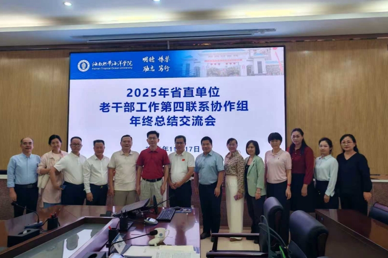 为全面总结2025年度省直单位老干部工作第四联系协作组各项工作成效,交流工作经验,谋划2026年工作思路,11月17日下午,2025年省直单位老干部工作第四联系协作组年终总结交流会在海南热带海洋学院三亚校区行政楼217会议室顺利召开。海南热带海洋学院党委副书记符成彦参加会议并讲话,协作组各成员单位相关负责人参加会议。会议由学校离退休人员服务中心主任何海滨主持。