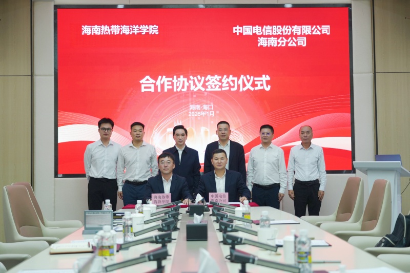1月12日下午,海南热带海洋学院与中国电信海南公司战略合作协议签约仪式在海南省数据产品超市举行。校长吕治国、中国电信海南公司总经理黄晓鲁共同见证签约。